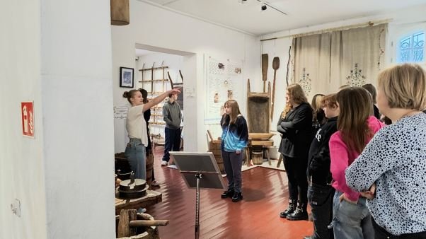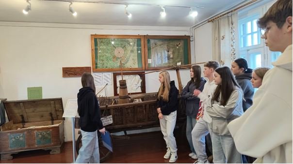 Podczas zwiedzania uczniowie zobaczyli liczne eksponaty, w tym dawne przedmioty codziennego użytku, kaszubskie hafty i wyroby rękodzielnicze. Młodzi przewodnicy, członkowie Kaszebsko Zgraja, z zaangażowaniem opowiadali o poszczególnych elementach wystawy, dzieląc się ciekawostkami związanymi z historią i kulturą Kaszub.
