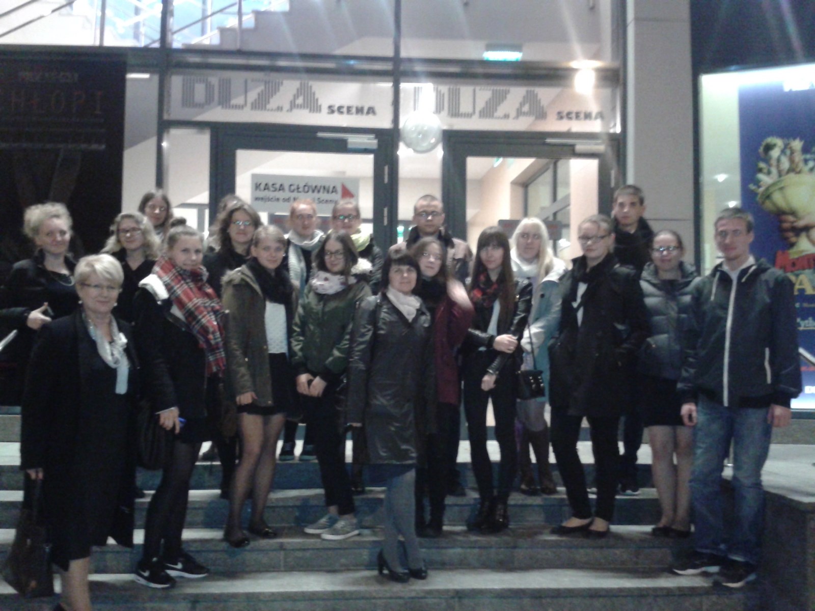 Dnia 25.10.2015 roku dzięki wsparciu Stowarzyszenia dla Edukacji przy ZSZIO w Kartuzach trzydzieścioro uczniów naszej szkoły wraz z opiekunami panią M. Klasa i panią L. Zaborowską wybrało się do Teatru Muzycznego w Gdyni na spektakl pod tytułem „Grease”. Wyjechaliśmy punkt 15:30, po godzinnej jeździe weszliśmy do budynku. Jako że udało nam się dotrzeć 30 minut przed czasem każdy miał chwilę dla siebie. Seans miał miejsce o 17:00. Każdy z zaciekawieniem oraz uznaniem wsłuchał się w treść piosenek oraz poczuł klimat lat 30. Po zakończeniu aktorzy aż 7 razy kłaniali się, dostali zasłóżony aplauz na stojąco. Podczas powrotu w autobusie całą drogę można było usłyszeć pochwały odnośnie aktorstwa, utworów oraz scenerii.