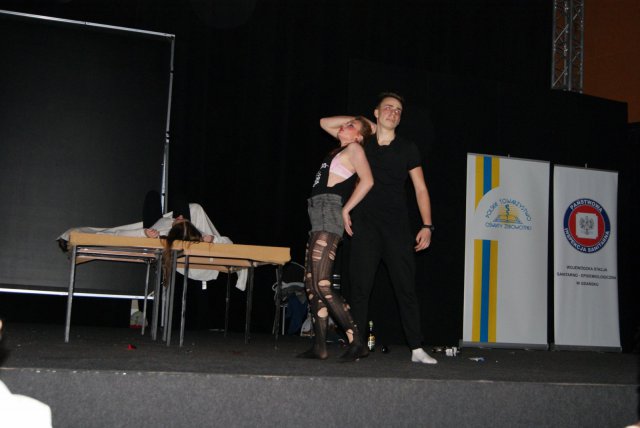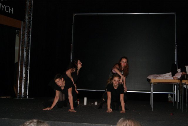 Grupa przygotowywana przez Panią Martę Furman 10 grudnia wzięła udział w Wojewódzkim Przeglądzie Małych Form Teatralnych pod tegorocznym hasłem „Pomyślmy o HIV”. Nad organizacyjnym przygotowaniem uczniów ze Szkolnego Koła Teatralnego czuwała Pani Justyna Kluge. Scenariusz oraz układ choreograficzny przygotowała uczennica klasy II LOc – Kaja Zalewska.