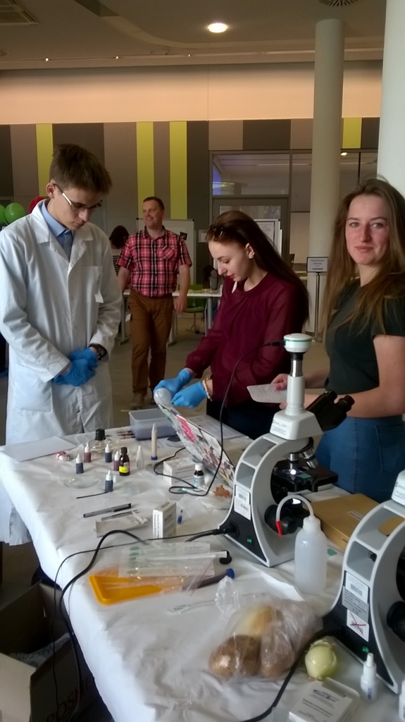 W ramach imprezy prezentowane były stanowiska z ciekawymi eksperymentami i zagadnieniami dotyczącymi nauki. Uczniowie mieli możliwość zaobserwować struktury niewidoczne nieuzbrojonym okiem, posmakować niezwykłych produktów kuchni molekularnej oraz jadalnych mikroorganizmów, poznać bakterie, które żyją z nami każdego dnia oraz sekrety antybiotyków, wyizolować DNA z owoców i warzyw, dowiedzieć się jak powstaje tęcza jak i zobaczyć hodowlę roślin w kulturach in vitro.