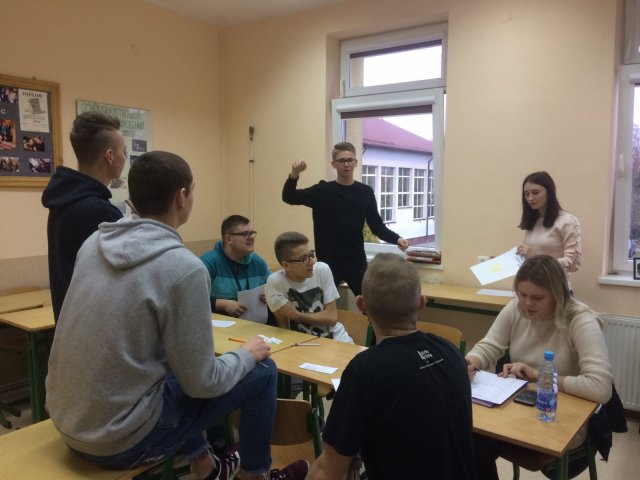 W ramach uświetnienia obchodów Narodowego Święta Niepodległości oraz hasła MEN – Rok dla Niepodległej, uczniowie klasy humanistycznej pod opieką p. M. Meisner – Kwiatkowskiej zorganizowali dla swoich młodszych kolegów grę edukacyjną „Droga do Niepodległości. Na terenie szkoły zostały wyznaczone punkty, na których drużyny klasowe, musiały się wykazać wiedzą, umiejętnościami, sprawnością fizyczną, ale także planowaniem strategicznym i kreatywnością. Gra została przeprowadzona po raz pierwszy, ale mamy nadzieję, że na stałe już zagości w programie naszej szkoły.