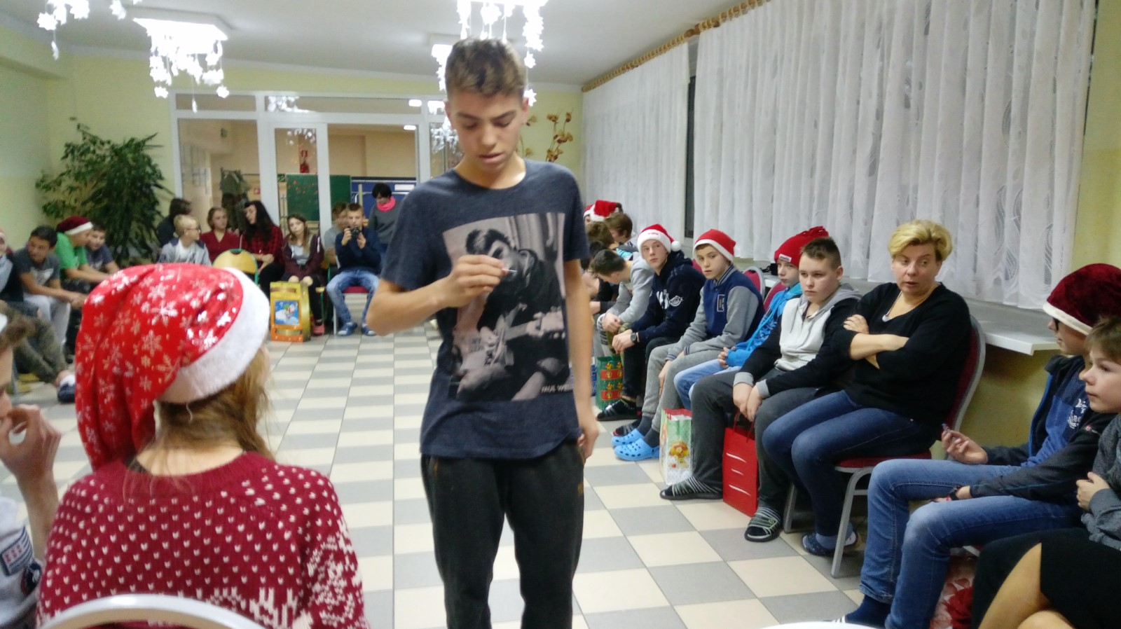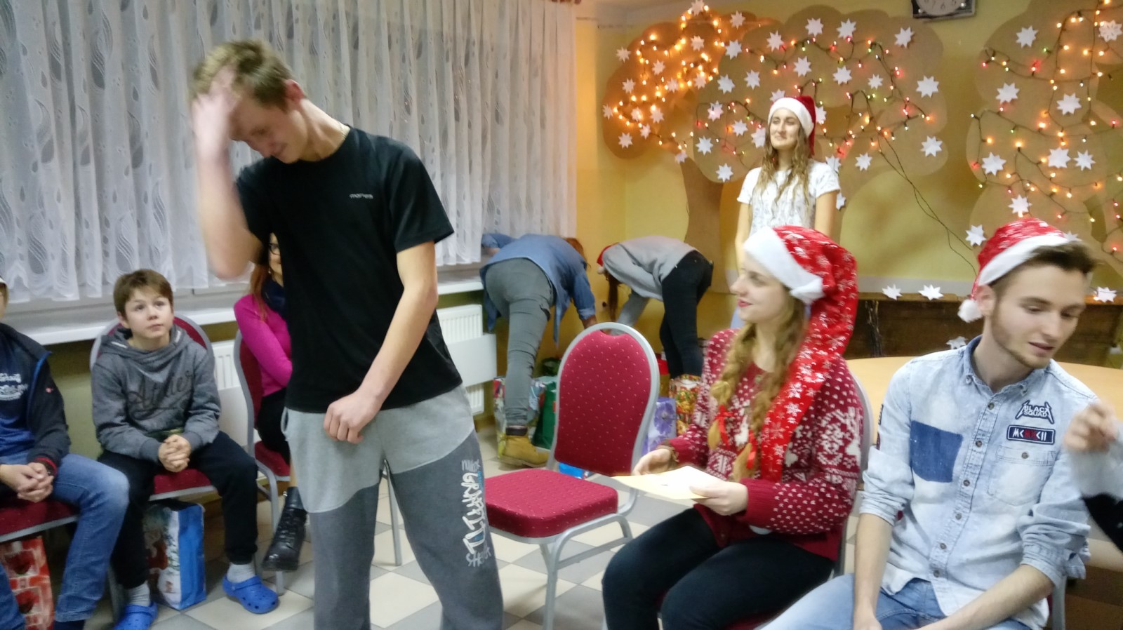 W dniu 6 grudnia wolontariusze z naszego koła: Angelika Leyk, Martyna Fiołek, Natalia Damaszk, Weronika Kosater, Marta Dawidowska, Adam Szymichowski, Joanna Okroj i Weronika Kwidzińska pod opieką pani Beaty Gruby udali się do Internatu Ośrodka Szkolno - Wychowawczego w Kartuzach, by uczcić tradycyjne Mikołajki. Dzięki zorganizowanej wcześniej w szkole i CH Kaszebe akcji charytatywnej udało się zebrać słodycze i zabawki, z których wolontariusze przygotowali paczki dla podopiecznych ośrodka. Zabawa mikołajkowa przebiegała w niezwykle miłej i radosnej atmosferze.