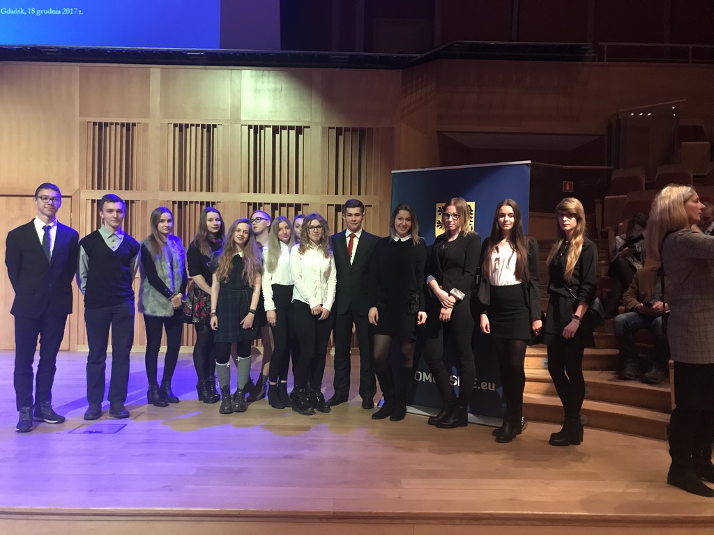 W dniu18 grudnia 2017 roku w gmachu Filharmonii Bałtyckiej im. Fryderyka Chopina w Gdańsku nasi uczniowie wraz z wicedyrektor Joanną Stencel brali udział w uroczystości wręczania stypendium. W trakcie Gali wręczono Stypendia Marszałka Województwa Pomorskiego przyznane na rok szkolny 2017/2018, finansowane ze środków europejskich dla uczniów uzdolnionych, w szczególności w zakresie przedmiotów matematycznych, przyrodniczych, informatycznych i języków obcych. Wyróżnionymi uczniami w naszej szkole są: