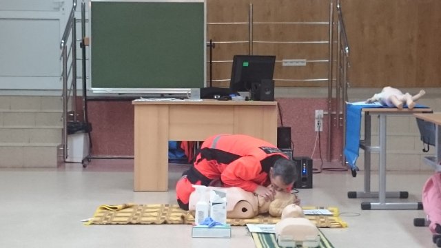 Uczniowie mieli również możliwość zdobycia umiejętności praktycznych udzielania pierwszej pomocy na manekinach.