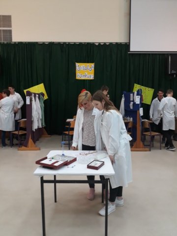 Dnia 23 kwietnia 2018 w I LO w Kartuzach odbył się etap powiatowy konkursu chemicznego „ Burza w szklance wody”. Konkurs skierowany był do uczniów klas 1 szkół ponadgimnazjalnych lubiących przyrodę i zagadki. Z naszej szkoły udział w konkursie wzięły dwie uczennice z I LO d : Agata Pipka oraz Kaja Denis. Uczennice miały za zadanie rozwiązać zagadki w stylu Escape- Room w „ pokoju szalonego chemika” jak również brały udział rozgrywkach drużynowych, w których zajęły II miejsce. Na zakończenie konkursu odbył się pokaz ciekawych eksperymentów chemicznych prowadzony przez ekspertów z Centrum Chemii w Małej skali z Torunia.