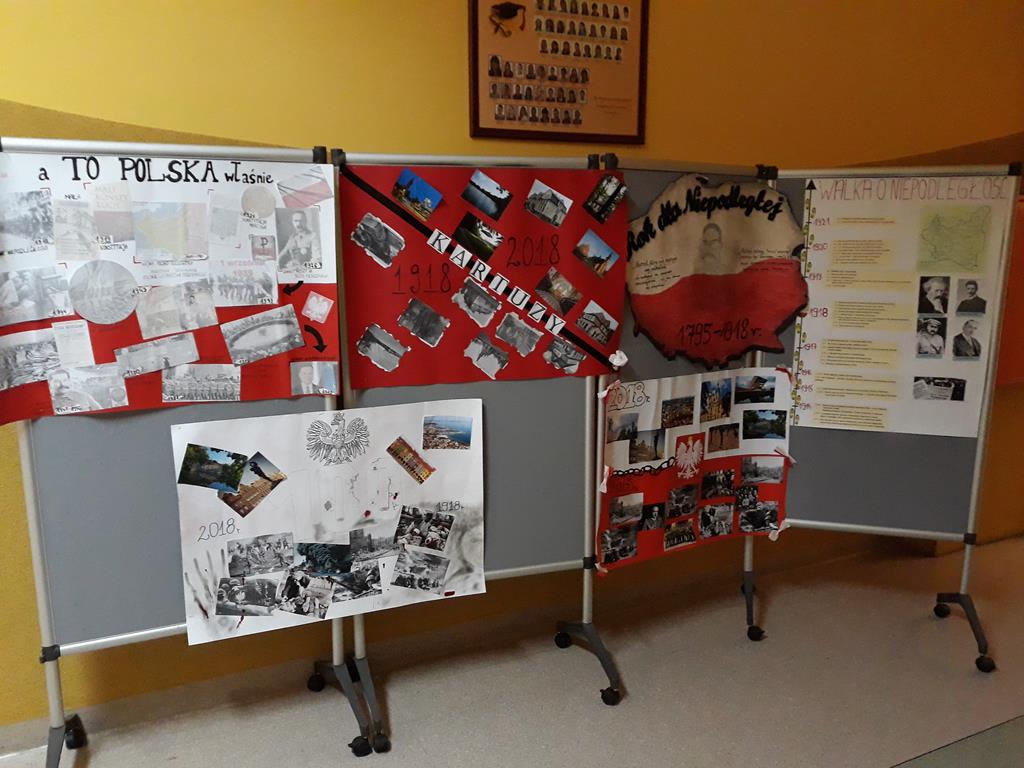 To szklony konkurs na samodzielne stworzenie, dowolną techniką i z dowolnych materiałów pracy plastycznej, kolażu. Praca związana jest z tematyką Polski w latach 1918 – 2018. Na konkurs wpłynęło dwadzieścia prac, które obecnie są prezentowane na wystawie szkolnej.