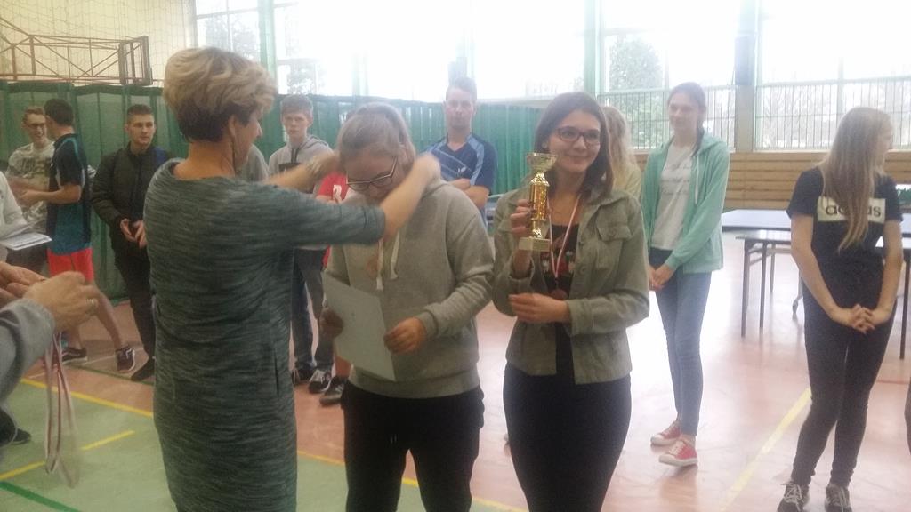 Powiatowa Licealiada w tenisie stołowym dziewcząt i chłopców. 19 listopada 2018 roku w naszej szkole rozegrano drużynowe zawody w tenisie stołowym szkół ponadgimnazjalnch powiatu kartuskiego, w których drużyna dziewcząt zajęła I miejsce i będzie reprezentować powiat kartuski w Półfinale Wojewódzkiej Licealiady 28 listopada oraz drużyna chłopców zajęła II miejsce w turnieju. Razem w zawodach uczestniczyło 9 reprezentacji szkół ponadgimnazjalnych naszego powiatu. Naszą szkołę reprezentowali: Patrycja Arent, Ewelina Sikora, Julia Szweda oraz Jarosław Piepiórka, Szymon Musiołowski, Maksymilian Miotke. Organizatorem zawodów był Roman Pytka, sędzią głównym był p. Mirosław Płotka. Uroczystego podsumowania zawodów i wręczenia nagród dokonała pani dyrektor Teresa Riegiel.