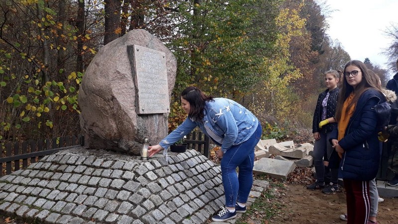 - we wtorek (29 X 2019 r.) uczniowie klasy I LO c udali się na pomnik pomordowanych nauczycieli z powiatu kartuskiego w czasie II wojny światowej,