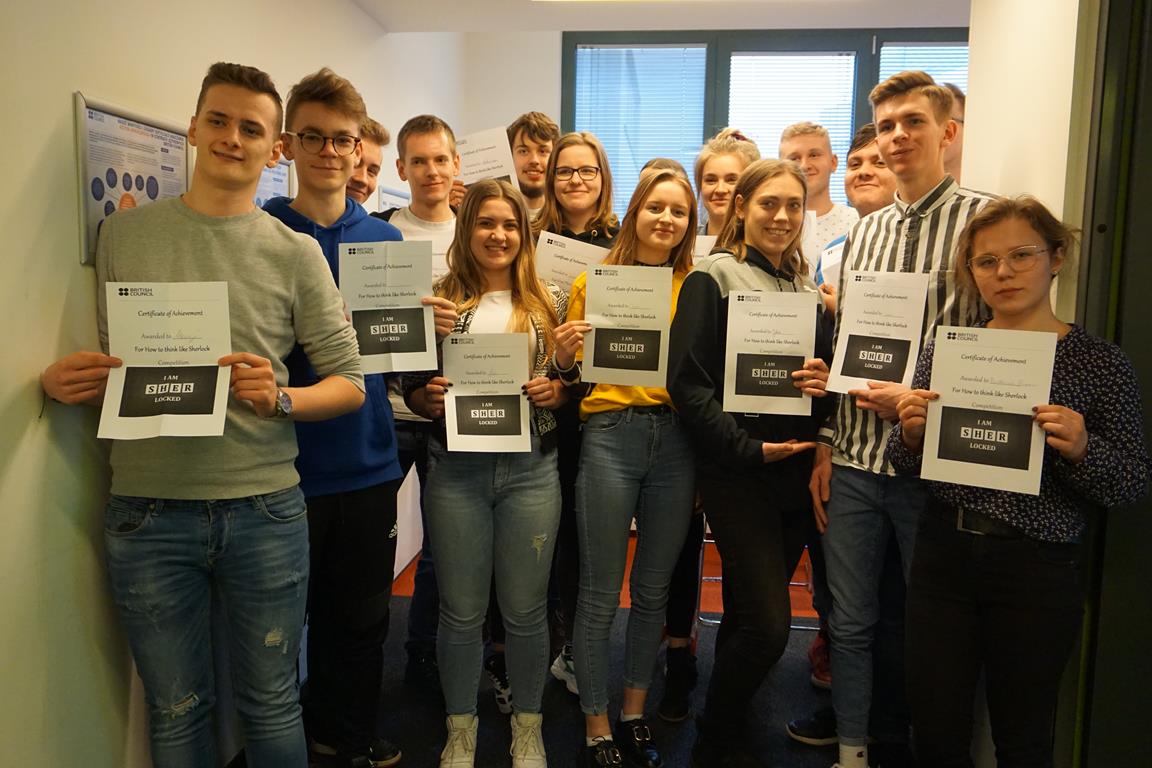 W ramach projektu innowacji realizowanego w ZSZiO:" Licealista - Wszechstronny Specjalista", 17 lutego 2020 wraz z grupą uczniów odwiedziliśmy siedzibę British Council w Warszawie. Mieliśmy okazję przystąpić do komputerowego testu Aptis for Teens, a także uczestniczyć w warsztatach kulturowych: "How to think like Sherlock", podczas których uczyliśmy się dedukcji, łamania kodów i umiejętności patrzenia na problem z różnych perspektyw jednocześnie.