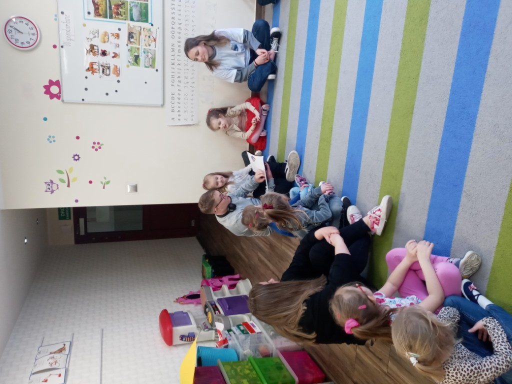 W czasie zajęć z dziećmi uczniowie z naszej szkoły czytali bajki, by umilić im czas i zachęcić do częstszego kontaktu z książką. Spotkanie odbyło się w miłej atmosferze, dzieci bardzo dobrze bawiły się, natomiast wolontariusze mieli możliwość uczenia się nawiązywania prawidłowych relacji z dziećmi.