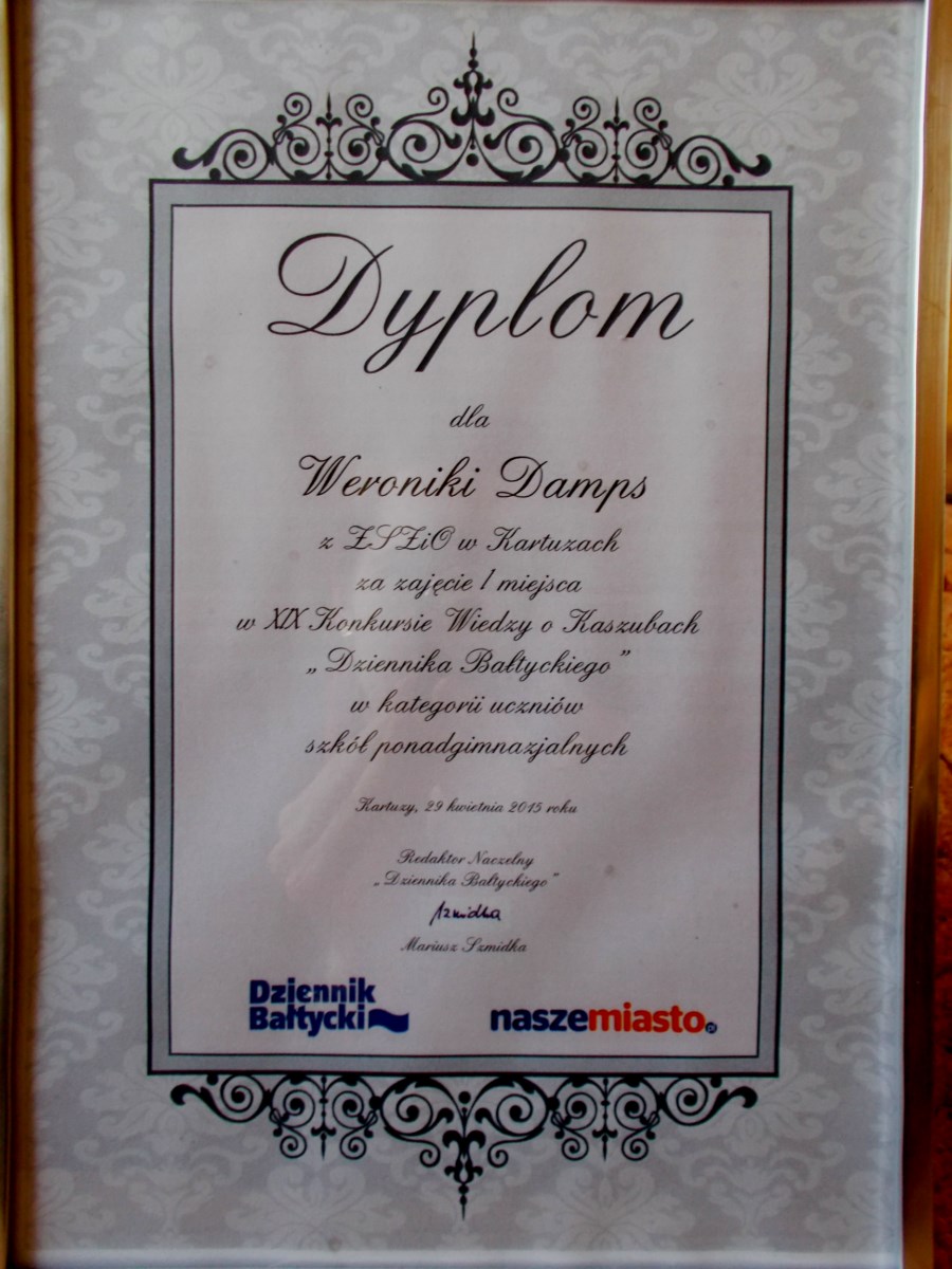 W tym roku odbyła się już XIX edycja Konkursu Wiedzy o Kaszubach organizowana co roku przez redakcję „Dziennika Bałtyckiego” . Naszą szkołę reprezentowała Weronika Damps z klasy III TEa.