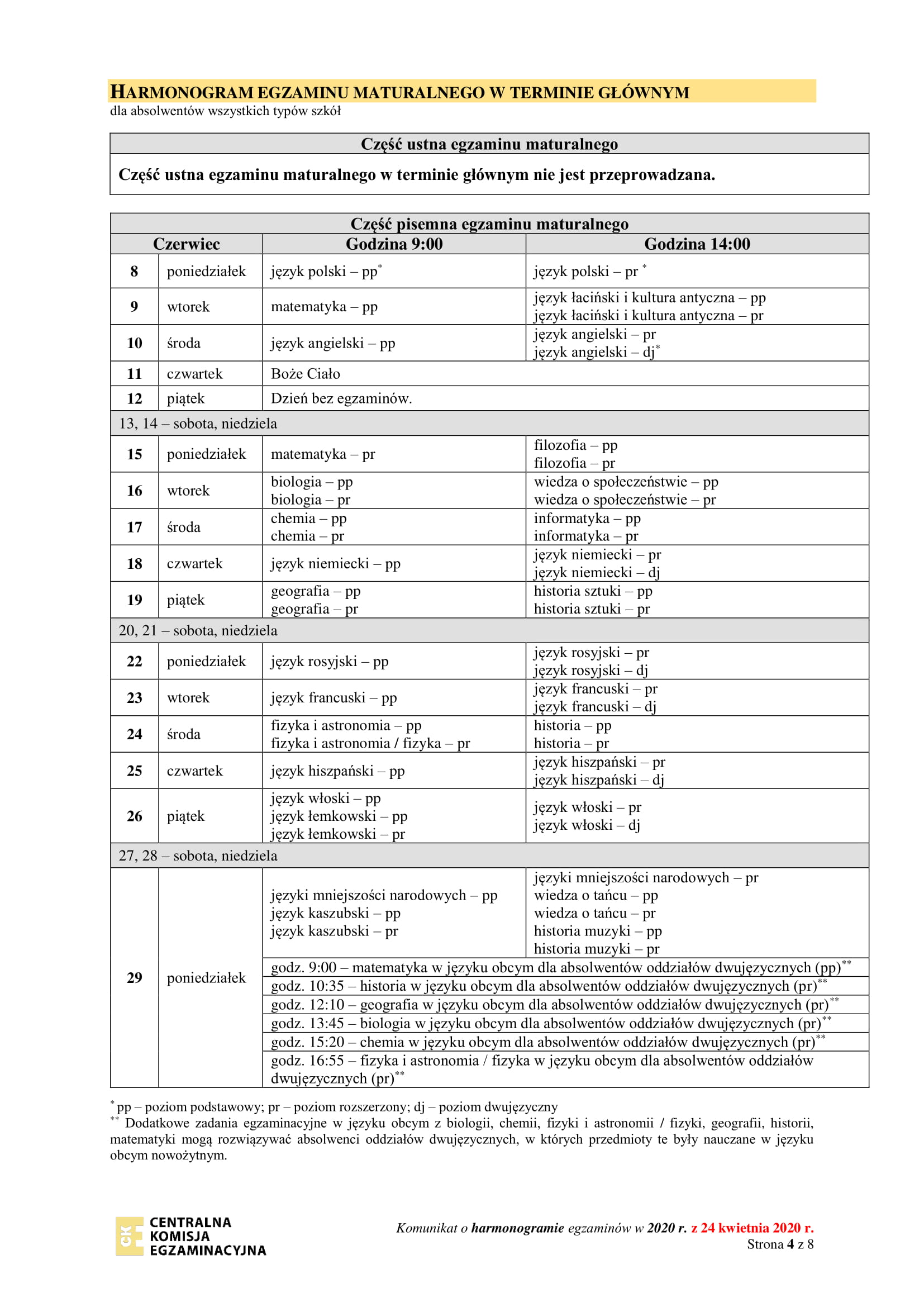 HARMONOGRAM EGZAMINU MATURALNEGO