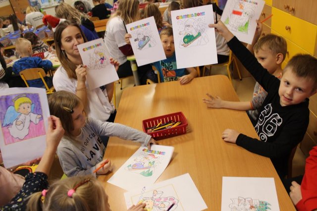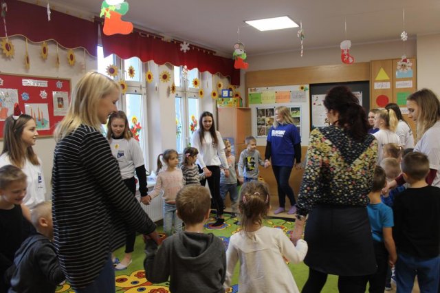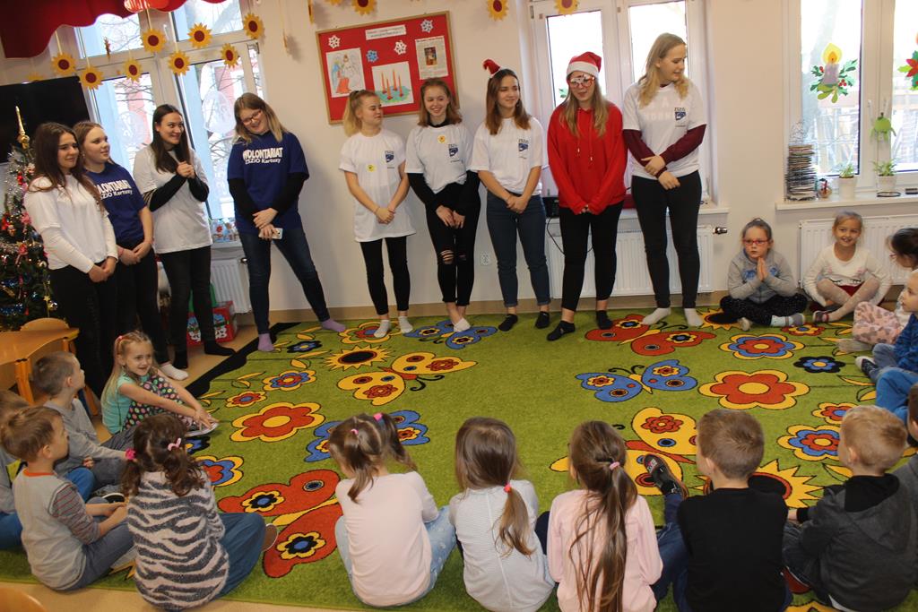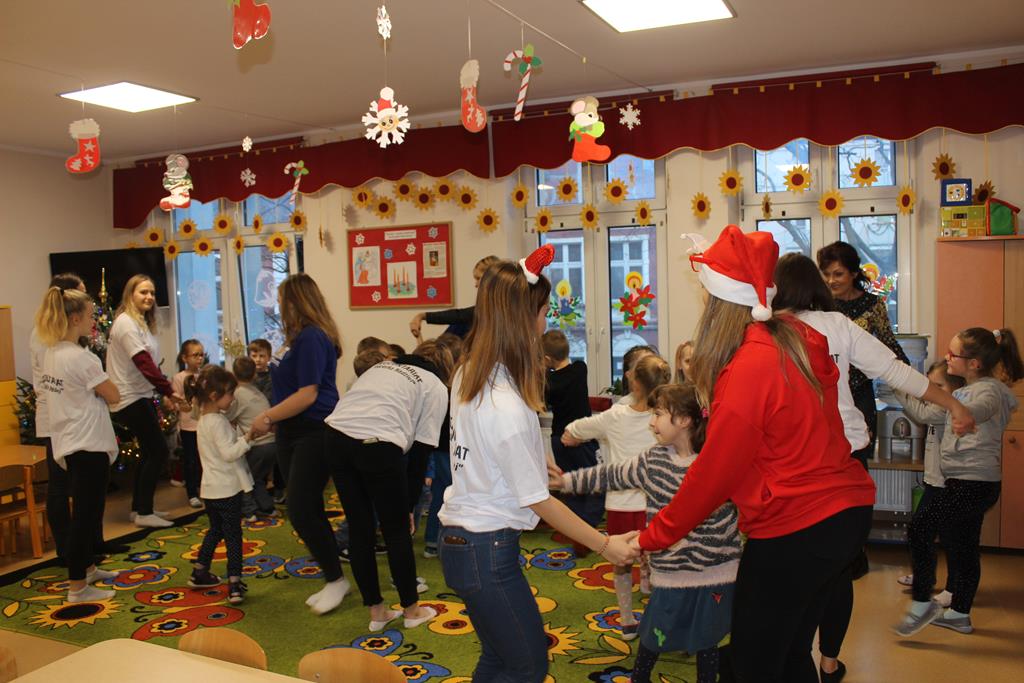 Ponadto Wolontariusze przygotowali dla przedszkolaków własnoręcznie robione bombki jako drobne upominki w ramach zbliżających się Świąt Bożego Narodzenia. Dodatkowo podczas wizyty odbywały się zabawy, tańce i śpiewanie kolęd.