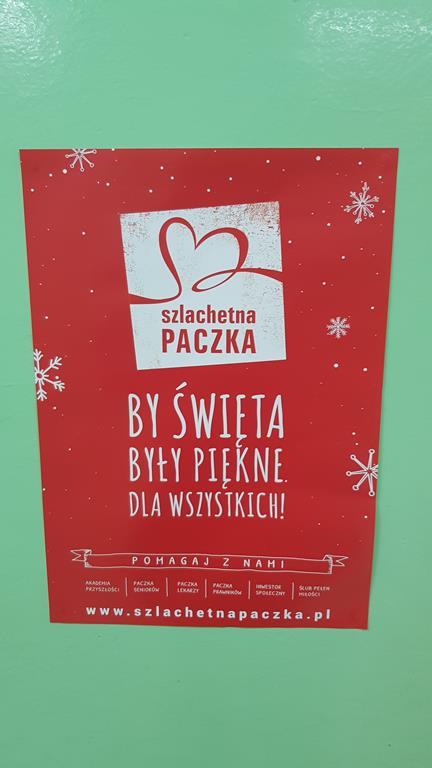 8 grudnia 2018r. wolontariusze ze Szkolnego Klubu Wolontariatu „ Iskierka Nadziei” dołączyli do akcji” Szlachetna Paczka” z rejonu Sierakowice i pomagali przy pakowaniu oraz rozwożeniu paczek do wybranych rodzin.