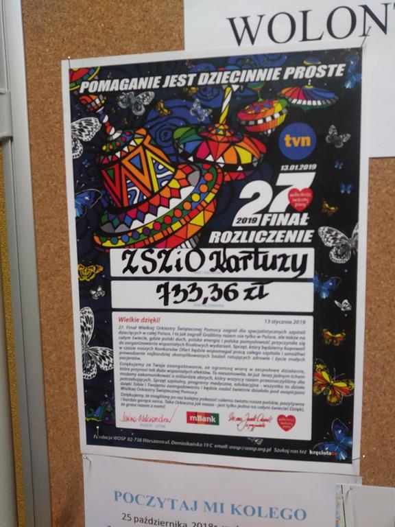 Zaangażowanie szkoły tj. uczniów i wolontariuszy w akcję charytatywne o zasięgu ogólnopolskim. |