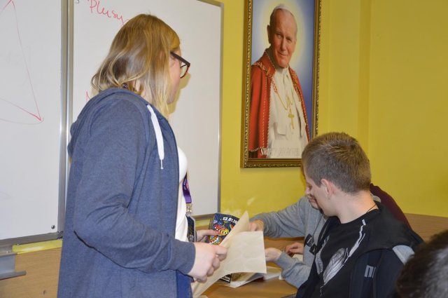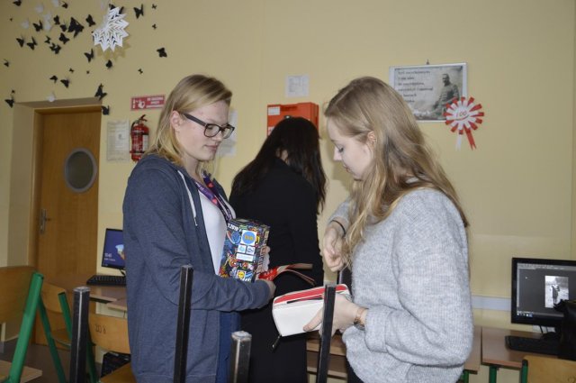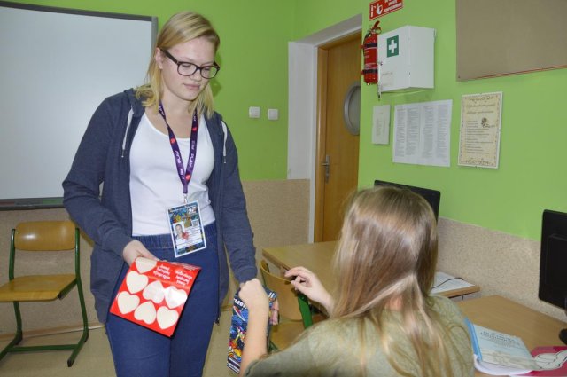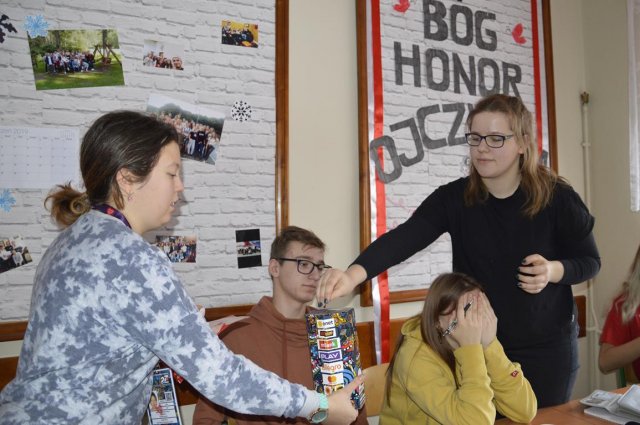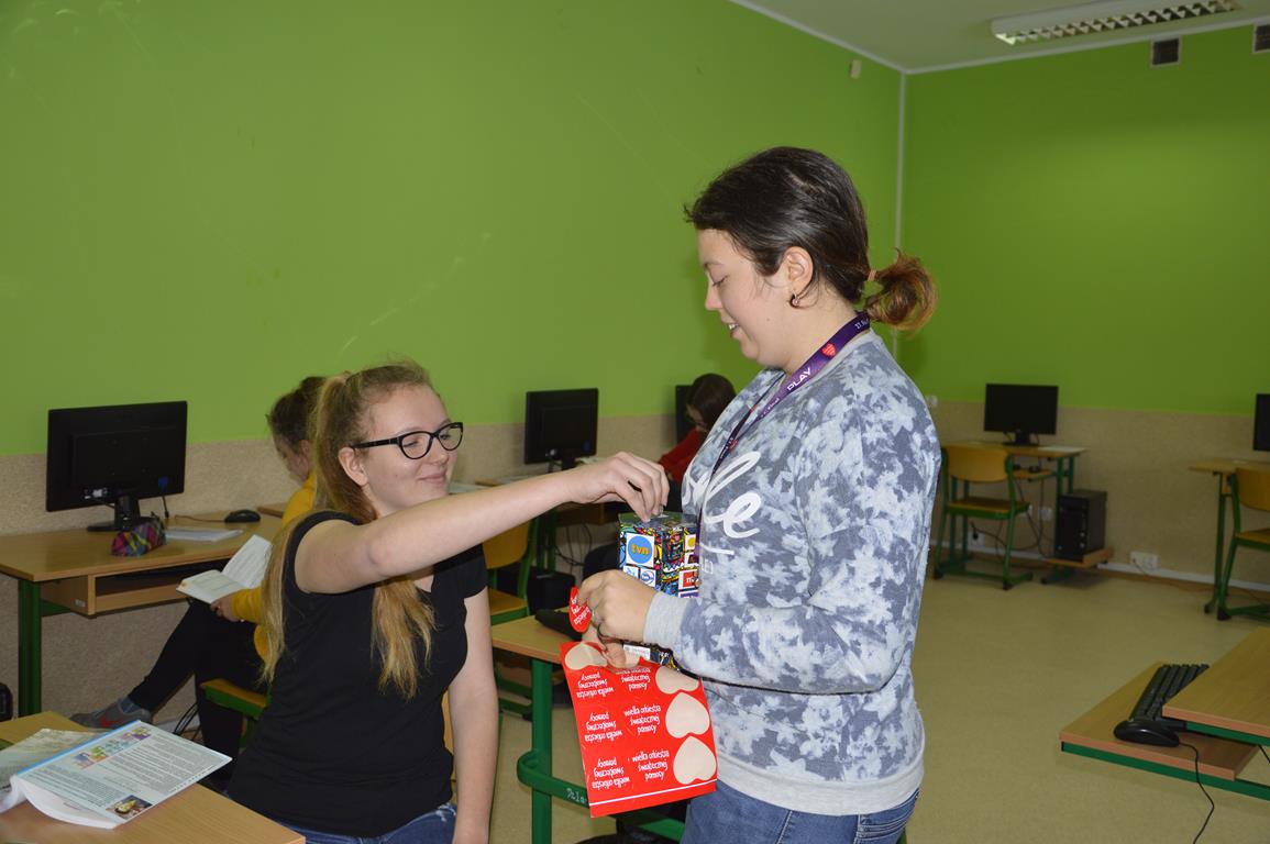 Dodatkowo na uroczystości tej obecna była pani koordynator „Szlachetnej Paczki” z regionu Sierakowice, Pani Katarzyna Mielewczyk, absolwentka naszej szkoły. Pani Kasia podzieliła się z wolontariuszami swoimi doświadczeniami z pracy jako wolontariusz w szkole, a obecnie jako wolontariusz w środowisku lokalnym.