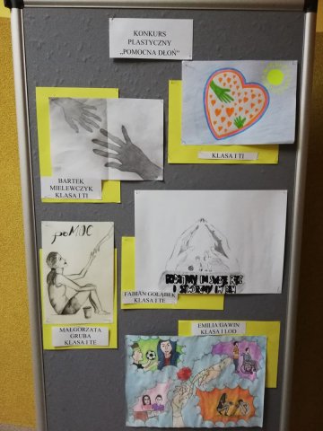 W związku z realizacją projektu „Szkolny Klub Wolontariatu” w Zespole Szkół Zawodowych i Ogólnokształcących w Kartuzach odbył się konkurs plastyczny pt. „Pomocna dłoń”.
