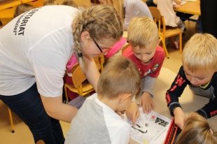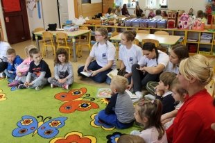 W czasie zajęć z dziećmi uczniowie z naszej szkoły czytali bajki, by umilić im czas i zachęcić do częstszego kontaktu z książką.