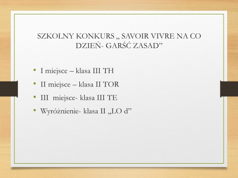 - „Savoir vivre na co dzień – garść zasad” – konkurs na film lub prezentację dla klas drugich