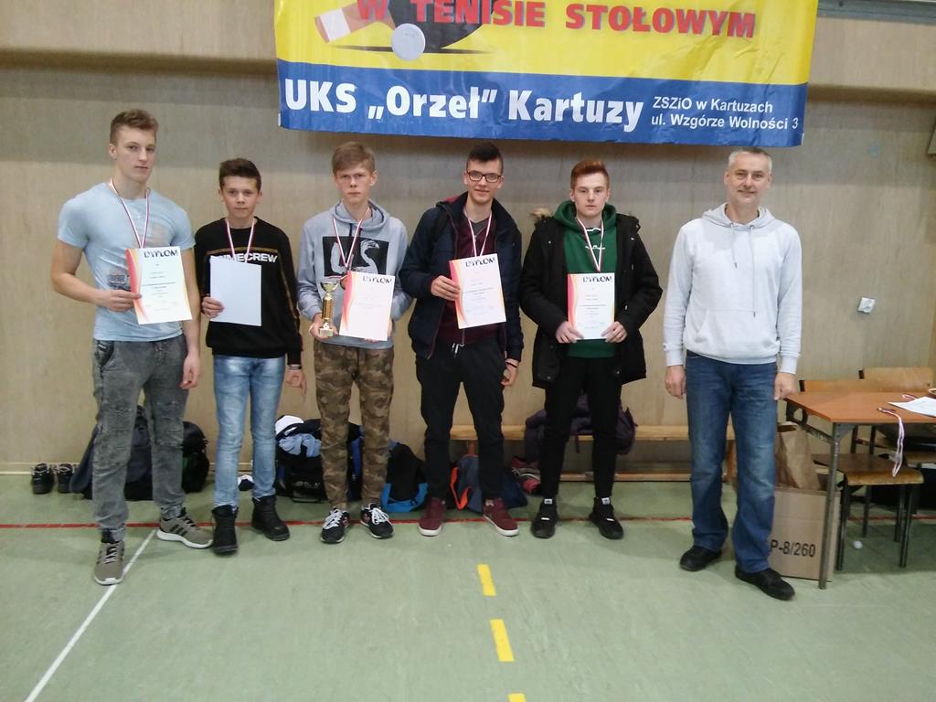 Organizujemy w naszej szkole zajęcia tenisa stołowego dla dzieci i młodzieży oraz dorosłych, w szczególności dla uczniów ZSZ i O w Kartuzach. 24 i 25 listopada 2018 roku odbyły się po raz 17 Indywidualne Mistrzostwa Kartuz w Tenisie Stołowym. Gmina Sierakowice z okazji 100 – lecia Odzyskania Niepodległości Polski ufundowała dodatkowe nagrody – 100 medali, które zostały wręczone uczestnikom projektu. Zawody zostały zorganizowane w uroczysty sposób. Otwarcia zawodów dokonał przedstawiciel Powiatu Kartuskiego p. Mirosław Szutenberg, a uroczystego podsumowania turnieju w imieniu dyrekcji szkoły dokonała p. Teresa Riegiel wręczając medale, dyplomy i nagrody dla uczestników. Rozgrywki cieszyły się dużym zainteresowaniem dzieci i młodzieży oraz dorosłych. Organizator zawodów p. Roman Pytka z dużym zadowoleniem przyjął sukcesy naszych uczniów. Mistrzem Kartuz w kategorii szkoły ponadgimnazjalne została Patrycja Arent, drugie miejsce zajęła Ewelina Sikora, trzecie miejsce zajęła Agnieszka Hirsz. Wśródchłopców Szymon Musiołowski wywalczył mistrzostwo Kartuz, drugi był Łukasz Gosz, dalej Paweł Drywa, Dawid Belgru, Damian Pestka, Piotr Kreft. W drugim dniu zawodów w kategorii seniorki młodsze PartrycjaArent wywalczyła drugie miejsce, Ewelina Sikora była trzecia, dalsze miejsce zajęła Krystyna Bielicka, oraz seniorzy młodsi: drugie miejsce wywalczył Paweł Drywa, trzeci był Łukasz Gosz, czwarty Damian Pestka. Sędziował p. Mirosław Płotka.